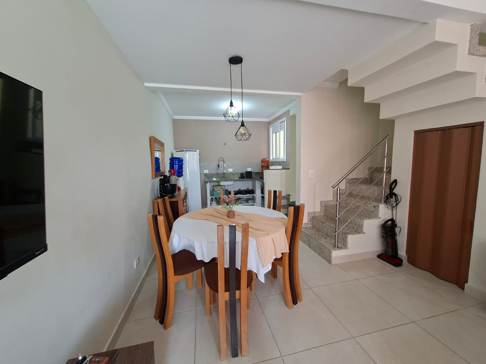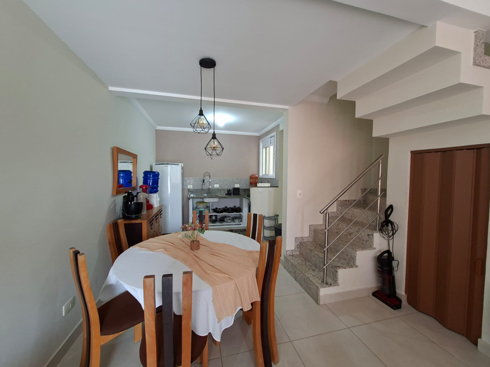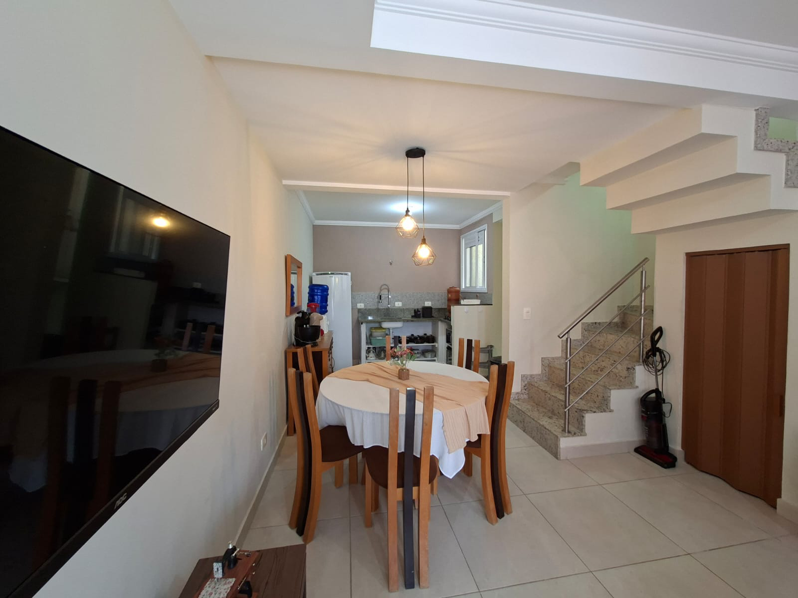 O imóvel possui dois quartos, sendo um suíte, um banheiro social, espelhos, espaço home office, cozinha completa, lavanderia, varal móvel, TV a cabo com wi-fi, área gourmet com churrasqueira e freezer, garagem para um veículo, chave reserva, caixa de correspondência, mangueira, ducha externa e lixeira privativa.
